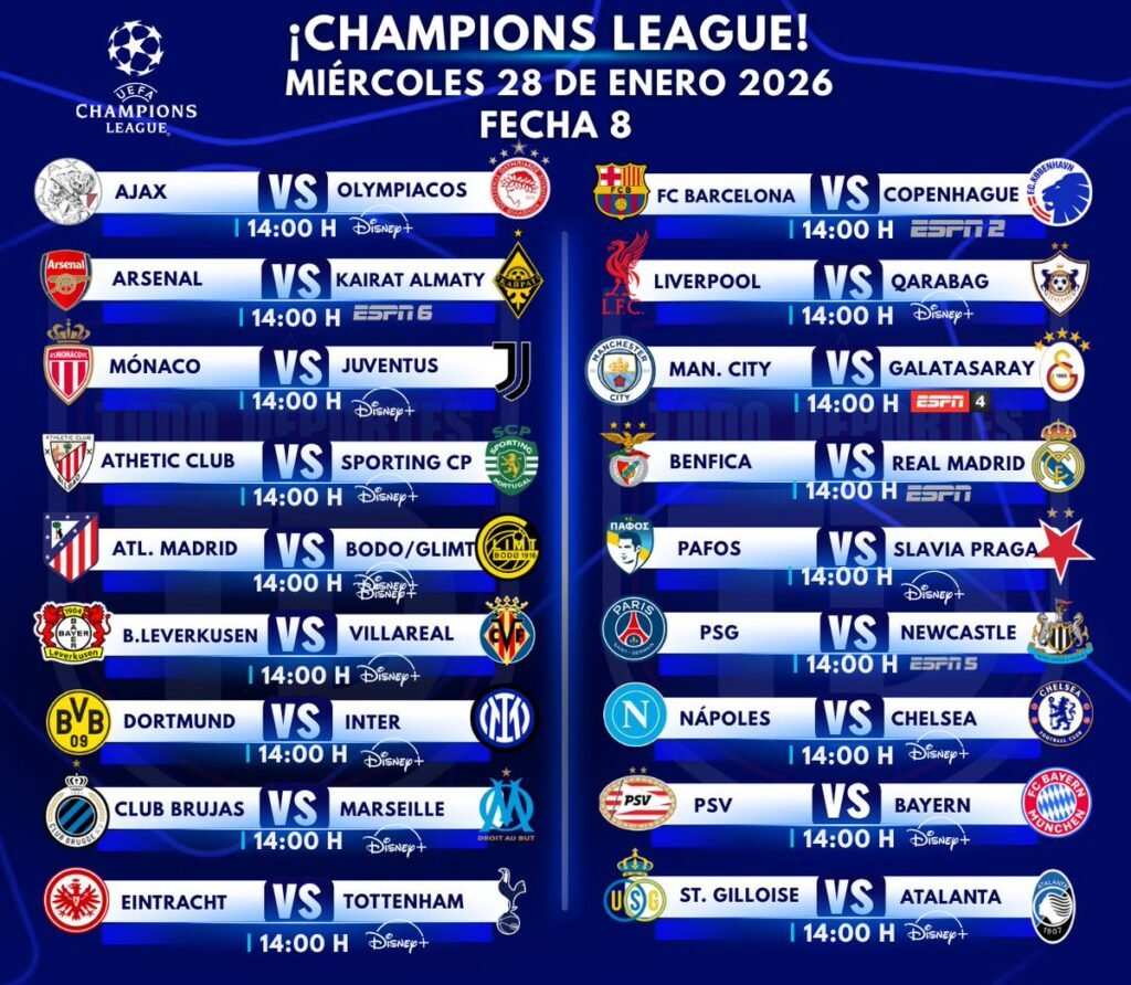 Más allá de los despachos, el césped reclama protagonismo. Mañana, miércoles 28 de enero, se disputa la octava y última jornada de la fase de liga de la UEFA Champions League. Es una noche de «todo o nada», ya que todos los encuentros se disputan de forma simultánea para garantizar la limpieza de la competición.